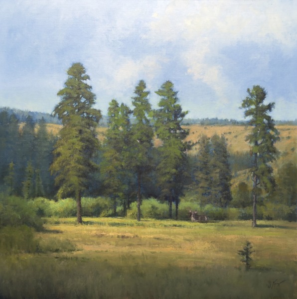 As a contemporary landscape painter, my work is a conscious play of mood, light and color, but as a naturalist raised and rooted in the diverse landscapes of western America, a painting means more than that to me. Each location is an encounter with the land, the trees, and the waters that have always given me a sense of connection and order. When a location intrigues and inspires me, I will paint the scene into a series using a range of keys or themes, experimenting and searching to learn more about the natural threads that tie the landscape together with complexity, subtlety and⎯more importantly⎯balance. I look for new ways to express spatial relationships and distance with layers of paint, brushwork, gradations, and diffusions of light. Hopefully, my study of the landscape will bring me somewhat closer to an honest translation⎯of both soul and land⎯as I push color and value into new compositions and continue a lifelong effort to communicate the emotional connection I feel with my environment.